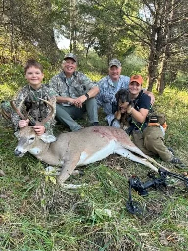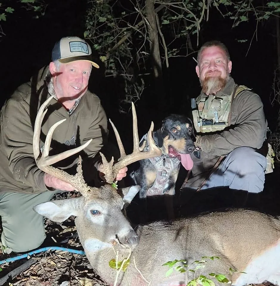 Kenzie works part of the year as a travel nurse, allowing her to be on call 24/7 throughout Kentucky’s four-month deer season. She also serves Southern Indiana and Southern Illinois, often tracking daily during peak season. Her medical background brings valuable field expertise, especially in reading blood sign, interpreting hits, and evaluating arrow evidence.